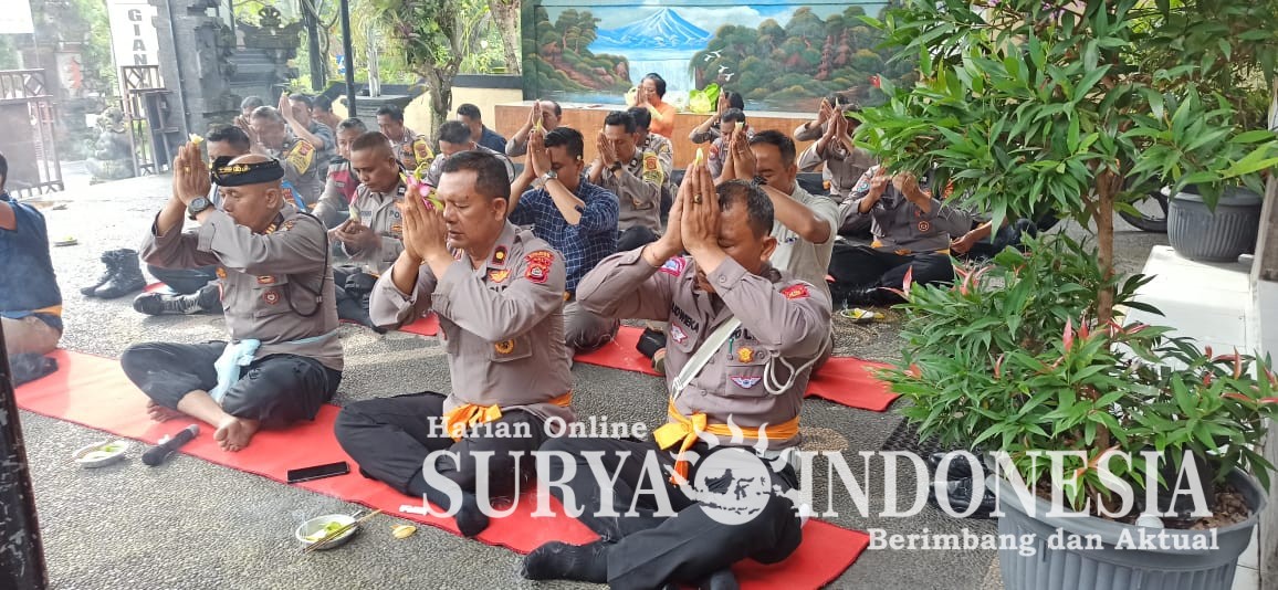 Gianyar , Surya indonesia.net – Personil Polsek Gianyar melaksanakan kegiatan Sembahyang bersama dalam rangka Hari Tilem Kepitu di Pura Giri Kusuma Polsek Gianyar, Selasa