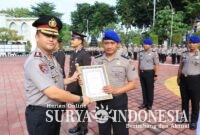 Suryaindonesia.net || GRESIK – Kepolisian Resor (Polres) Gresik menggelar upacara pemberian penghargaan serta penyerahan tanda kehormatan kepada personel berprestasi di halaman Mapolres Gresik, Senin
